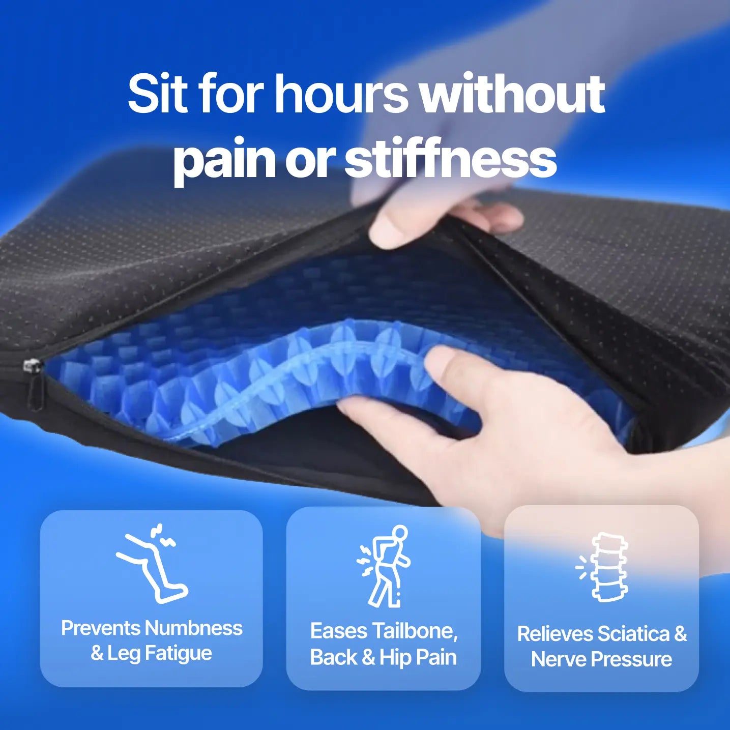The OrthoGrid distributes pressure across the entire surface. Your tailbone floats. Circulation keeps moving. The countdown stops.