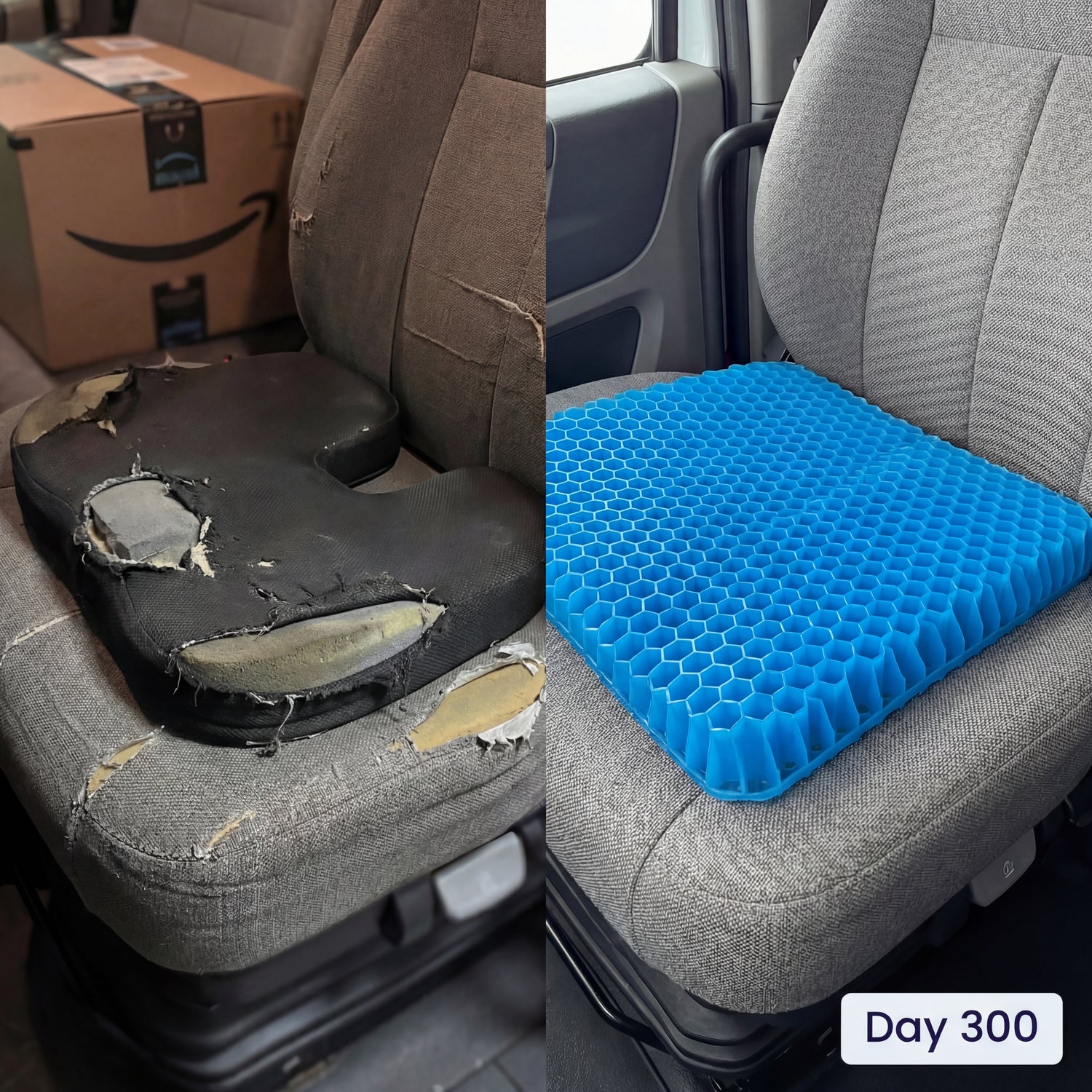 The OrthoGrid distributes that pressure across the entire surface. Your tailbone floats. The pain has nowhere to live.